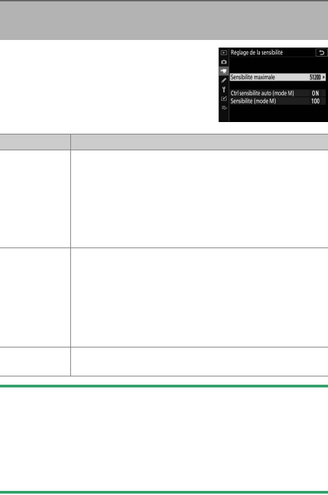 comprises entre 64 ISO (Z 7II) ou 100 ISO (Z 6II) et Hi 2,0.