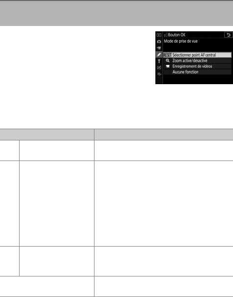 - Menu Prise de vue vidéo : options de prise de vue vidéo