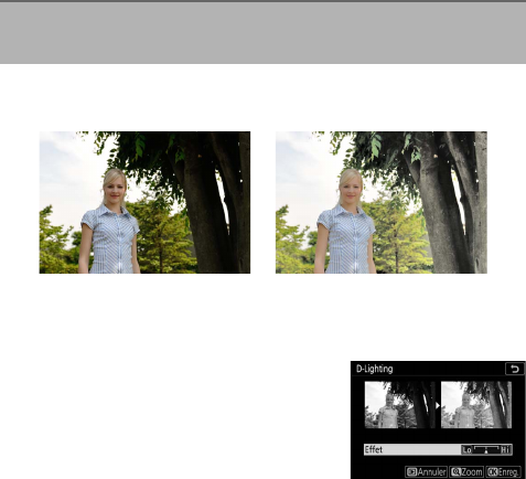 Le D-Lighting éclaircit les ombres. Il est idéal pour les photos
