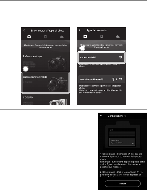 photo hybride], puis touchez [Connexion Wi-Fi].
