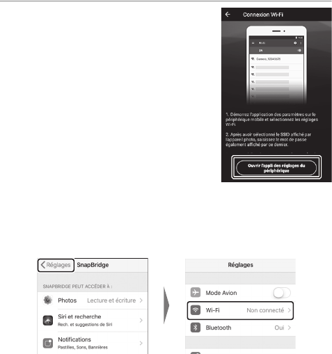 Périphériques iOS : l’application « Réglages » s’ouvre.