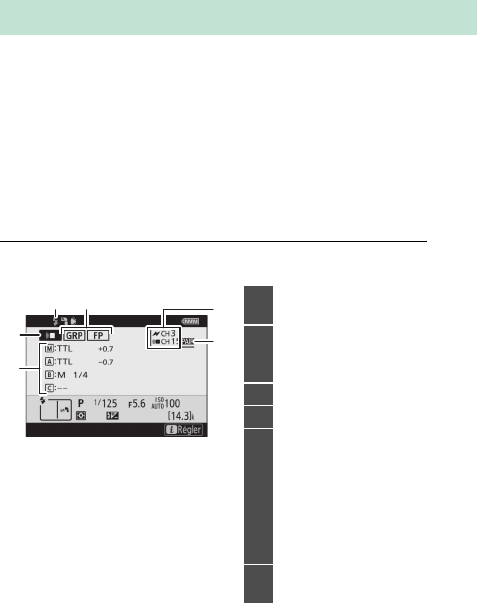 relatives aux flashes, appuyez sur la commande DISP en mode