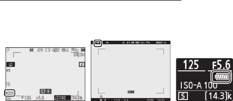 Le niveau de charge est indiqué sur l’écran de prise de vue et