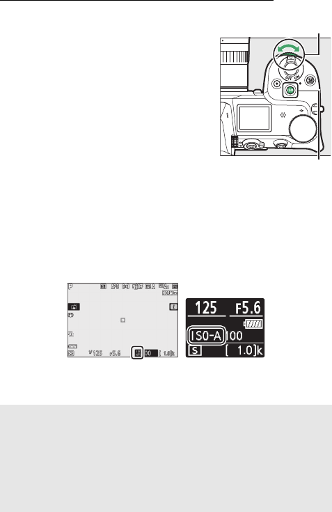 o ecrã de disparo mostrará ISO AUTO e o painel de controlo, ISO-A.