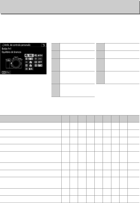 Bloqueio de AE/AF ✔✔✔— ✔ — ✔✔ —