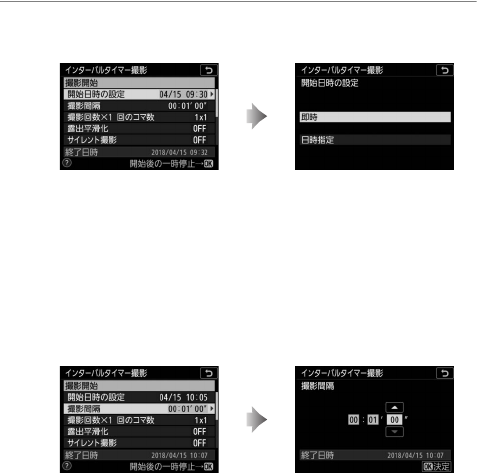 インターバルタイマー撮影の開始日時を設定する場合は、日時