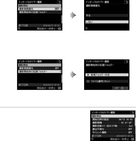 • 露光時間よりも撮影間隔を優先して撮影するかどうかを選ぶ
