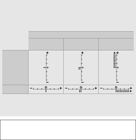 ファインダーに表示されます。この「露出インジケーター」の見方は次の通り