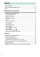 Cuprins Conținutul cutiei ......................................................................................... ii Pentru siguranţa dumneavoastră.........................................................xvi Note ............................................................................................................. xx Familiarizarea cu aparatul foto 1 Componentele aparatului foto ................................................................ 1 Corpul aparatului foto..............................