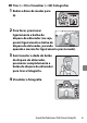 D Gravar Filmagens • A gravação de filmagem termina automaticamente se: - A duração máxima for alcançada - For selecionado outro modo - O seletor de fotografia/filmagem for rodado para C - A objetiva for removida • Os sons feitos pela câmara podem ser audíveis no filme gravado: - Durante a focagem automática - Durante a redução da vibração - Quando a abertura motorizada é utilizada D Aviso de Temperatura Elevada do Cartão de Memória Durante a gravação de filmagens, os cartões de memória podem ficar quente