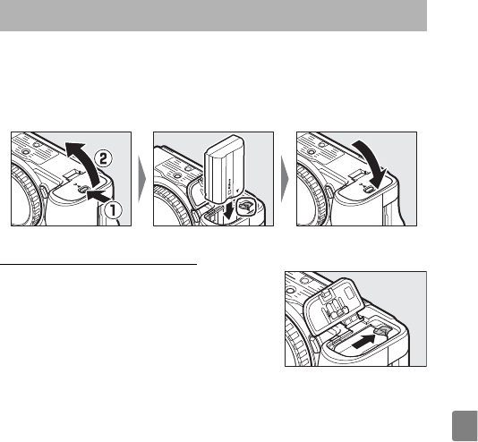 стороне, вставьте батарею в батарейный отсек до щелчка.