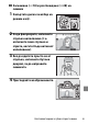 4 Натиснете бутона за запис на филм, за да започне записът. • Индикатор за записване на серия снимки през интервал ще се покаже на дисплея. Дисплеят показва оставащото време или с други думи приблизителната дължина на видео клипа, който може да се запише на картата с памет. 1 2 1 Индикатор за запис 2 Оставащо време • Фотоапаратът може да бъде фокусиран отново по време на снимане чрез натискане на бутона AF-ON. • Звукът се записва чрез вградения микрофон. Не покривайте микрофона по време на записа.
