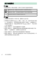 ● 新加坡用户须知 ۵ؿƳ ߉ؿƳZ 7II ۵ؿƳ ߉ؿƳZ 6II 本设备遵循无线电频率规定。未粘贴至本设备的认证标签内容如下。 Complies with IMDA Standards DA103423 ● 安全性 本产品可让他人在无线信号允许的范围内为交换数据自由地进行无线连接,但是若 不启用安全性保护将可能会出现以下情况: • 数据盗窃:恶意第三方可能会截取无线传送以盗窃用户名、密码以及其他个人信 息。 • 未经授权的访问:未授权用户也可能访问网络,更改数据或进行其他恶意操作。 请注意,由于无线网络的设计特性,即使启用了安全性保护,特殊攻击也可能实 现未经授权的访问。 • 不安全的网络:连接至开放网络可能会受到未经授权的访问。请仅使用安全的网 络。 A 一致性标记 使用设定菜单中的 [ 一致性标记 ] 选项可查看照相机遵循的标准。 790 蓝牙和 Wi-Fi (无线局域网络)