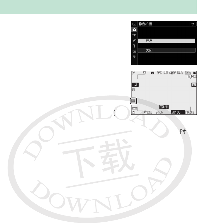 • 进行静音拍摄时,屏幕中将显示一个图标。