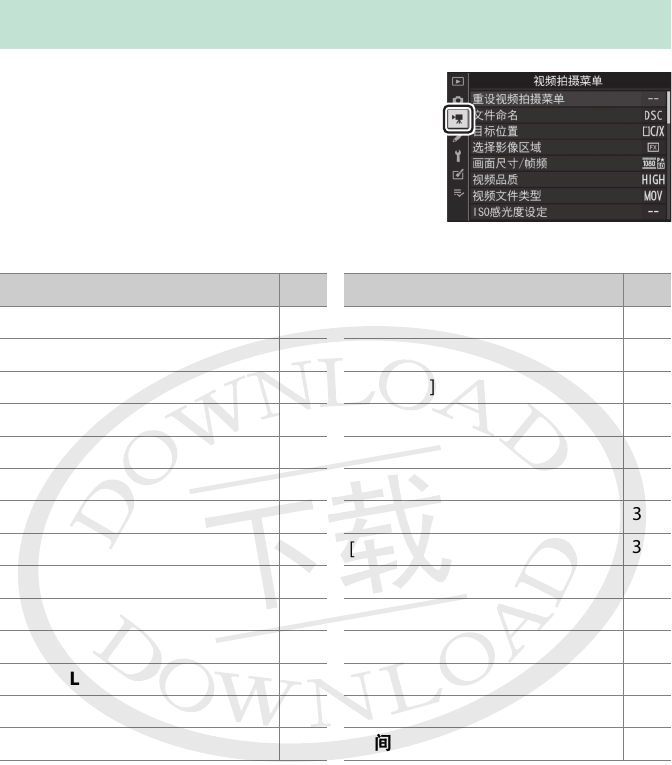 若要查看视频拍摄菜单,请在照相机菜单中选