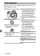 D Filme aufnehmen • Die Filmaufnahme endet automatisch, wenn: - die maximale Filmlänge erreicht wird - ein anderer Modus gewählt wird - der Foto/Video-Wähler auf C gedreht wird - das Objektiv abgenommen wird • In der Tonaufnahme sind möglicherweise Kamerageräusche hörbar: - während der automatischen Scharfeinstellung - während aktivem Bildstabilisator - bei motorischer Blendeneinstellung D Warnung vor heißen Speicherkarten Während Filmaufnahmen können die Speicherkarten in der Kamera heiß werden und es er
