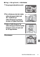 4 Tryk på videooptageknappen igen for at afslutte optagelsen. • På skærmen vises en indikator for optagelse. Skærmen viser også den resterende tid, eller med andre ord den omtrentlige mængde nye optagelser, der kan optages på hukommelseskortet. 1 2 1 Indikator for optagelse 2 Resterende tid • Kameraet kan fokuseres igen under optagelse ved tryk på knappen AF-ON. • Lyden optages via den indbyggede mikrofon. Dæk ikke mikrofonen til under optagelse.