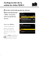 Configuración de la salida de vídeo RAW 2 Ajustes de la cámara 1 Habilite RAW output MENÚ CONFIGURACIÓN > HDMI > Avanzada > RAW output options Seleccione RAW output Seleccione Enable (no recording to card) 6