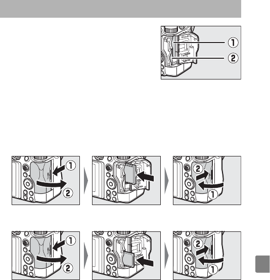 Sammuta kamera ennen kuin asetat tai poistat muistikortteja.