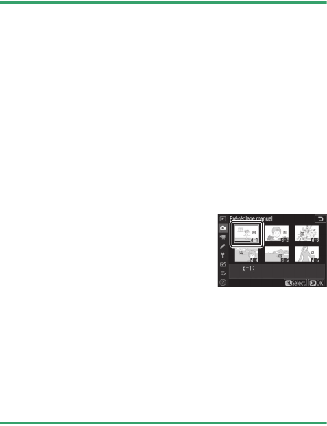 Pré-réglage manuel : sélection d’un pré-réglage