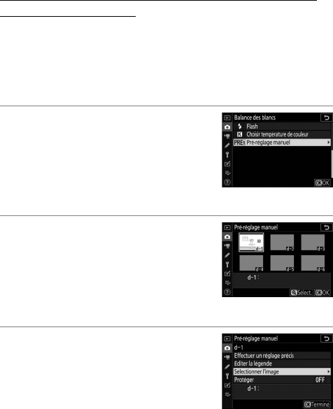 pré-réglage manuel, reportez-vous à « Pré-réglage manuel »