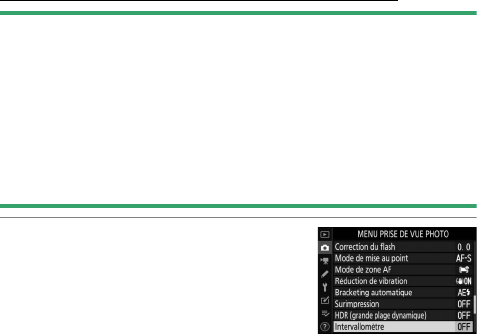 - Menu Prise de vue vidéo : options de prise de vue vidéo