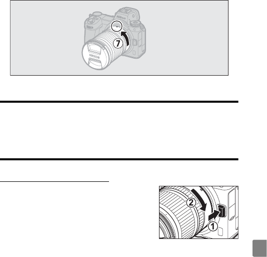 - Sukite objektyvą, kaip parodyta, kol jis užsifiksuos (