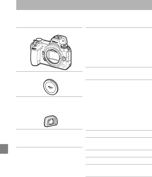 Įsitikinkite, kad su šiuo fotoaparatu pateikti visi čia išdėstyti