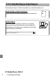 3 Aseta akku paikalleen. Aseta akku kokonaan ja varmasti sisään kuvan osoittamalla tavalla. 4 Sulje salpa. • Käännä akkutilan kannen salpa kiinni-asentoon (q) ja taita se alas kuvan mukaisesti (w). • Varmista, että salpa on pitävästi kiinni, jotta akku ei irtoaisi paikaltaan käytön aikana.