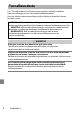 D Ennen tärkeiden kuvien ottamista Ennen kuin kuvaat tärkeissä tilaisuuksissa (kuten häissä tai kun aiot ottaa kameran mukaan matkalle), ota testikuva varmistuaksesi siitä, että kamera toimii normaalisti. Nikon ei vastaa tuotteen vioista mahdollisesti johtuvista vahingoista tai menetetyistä tuloista.