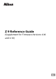 Changes with “C” Firmware Version 4.00 Features Available with “C” Firmware Version 4.00 The Z 9 Reference Guide is for “C” firmware version 3.00 (the latest version of the Z 9 Reference Guide is available from the Nikon Download Center). This chapter details the new features and changes introduced with camera “C” firmware version 4.00. The two documents are to be read together.