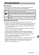 ● Лазери й інші джерела яскравого світла Не спрямовуйте лазери або інші джерела дуже яскравого світла в бік об’єктива, оскільки це може призвести до пошкодження датчика зображення фотокамери. ● Очищення Під час очищення корпусу фотокамери використовуйте грушу для делікатного видалення пилу та пуху, потім обережно протріть поверхню м’якою сухою тканиною.