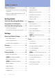 Table of Contents, Continued Audio.............................................. 50 HDMI Output.................................. 68 ● Microphone Sensitivity..................................... 50 ● HDMI........................................................................ 68 ● Attenuator............................................................. 51 ● External Recording Control: External Rec. ● Frequency Response......................................... 51 ● Wind Noise Reduction...................