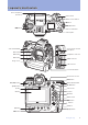 Frequently-Used Controls Stereo microphone (for videos) Power switch Shutter-release button E button S (Q) button I button Video-record button Control panel Sub-command dial Fn1 button Fn2 button Fn3 button Connector for external microphone Headphone connector HDMI connector Image sensor USB connector Focus-mode button Photo/video selector DISP button g (Fn4) button O (Q) button Main command dial AF-ON button Speaker Sub-selector Monitor i button J button Multi selector G button K button X butt