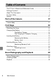 Troubleshooting 47 Before Contacting Customer Support .......................................................... 47 Technical Notes 48 Caring for the Camera ........................................................................................ 48 Long-Term Storage .................................................................... 48 Caring for the Camera and Battery: Cautions ............................................ 49 Cautions: Camera Care ......................................................