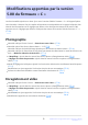 D Restrictions de l’option Maquillage en mode photo L’option Maquillage ne peut pas être associée à certaines fonctionnalités de l’appareil photo, notamment : la prise de vue haute vitesse +, les surimpressions et la superposition HDR.