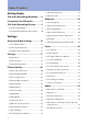 Table of Contents Getting Ready The Video Recording Workflow...... 4 Frequently-Used Controls............... 7 The Video Recording Display.......... 9 ● The Shooting Display...........................................9 ● The Information Display: Video Mode......... 10 Settings Accessing Video Settings.............. 14 ● The i-Button Menu............................................ 14 ● Video-Related Controls..................................... 15 ● The Video Recording Menu.............................