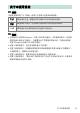 照相机的保养 长期存放 若您将在较长时间内不使用照相机,请取出电池。取出电池前,请先确认照相机 处于关闭状态。 切勿将照相机存放在以下位置: • 通风差或湿度超过 60% 的地方 • 产生强电磁场的设备 (例如,电视机或收音机)附近 • 温度高于 50 ℃或低于 −20 ℃的场所 888 照相机的保养