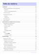 Comment les rubriques sont-elles ajoutées aux [RÉGLAGES RÉCENTS] ?. . . . . . . . . . . . . . . . . . 842 Dépannage. . . . . . . . . . . . . . . . . . . . . . . . . . . . . . . . . . . . . . . . . . . . . . . . . . . . . . . . . . . . . . . . . . . . . 843 Avant de contacter l’assistance technique. . . . . . . . . . . . . . . . . . . . . . . . . . . . . . . . . . . . . . . . . . . . . . . . . 843 Problèmes et solutions. . . . . . . . . . . . . . . . . . . . . . . . . . . . . . . . . . . . . . . . . . . .