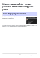 - Réglages personnalisés : réglage précis des paramètres de l’appareil photo
