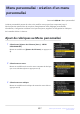 ou vers le bas du Menu personnalisé et appuyez sur J.