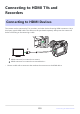 The camera can be connected to TVs, recorders, and other devices featuring HDMI connectors. Use a