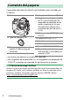 Familiarícese con la cámara y sus menús Partes de la cámara Cuerpo de la cámara 1 2 3 4 5 6 7 8 9 8 14 13 1 2 3 4 5 6 7 34 12 11 Botón de bloqueo del dial de modo de disparo (0 145) Botón BKT (0 177) Botón c (0 429) Micrófono estéreo (para vídeos; 0 93) Botón de grabación de vídeo (0 93) Botón S (Q) (0 154) Botón E (0 143) Partes de la cámara 10 8 9 10 11 12 13 14 Ojal para la correa de la cámara (0 71) E (marca del plano focal; 0 131) Panel de control (0 41, 813) Antena GNSS (0 204) Zapata de