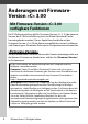 Mit Firmware-Version »C« 3.00 vorgenommene Änderungen Nachfolgend werden die mit der Kamera-Firmware-Version »C« 3.00 hinzugefügten oder aktualisierten Funktionen in einer Übersicht zusammengefasst. Die zugehörigen Informationen finden Sie auf den angegebenen Seiten. Eine Liste mit den Menüpunkten und Standardvorgaben für die Firmware-Version »C« 3.00 folgt unter »Menüpunkte und Standardvorgaben für die Firmware-Version »C« 3.00« (0 42).