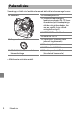 ● Laserid ja muud eredad valgusallikad Ärge suunake lasereid ega muid eriti eredaid valgusallikaid objektiivi suunas, kuna see võib kahjustada kaamera pildiandurit. ● Puhastamine Kaamera korpuse puhastamisel kasutage puhurit tolmu ja ebemete õrnaks eemaldamiseks, seejärel pühkige õrnalt pehme kuiva lapiga. Pärast kaamera kasutamist rannas või mere ääres pühkige ära liiv ja sool kergelt värskes vees niisutatud lapiga ning seejärel kuivatage kaamera põhjalikult.