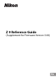 Changes with “C” Firmware Version 3.00 Features Available with “C” Firmware Version 3.00 The Z 9 Reference Guide is for “C” firmware version 2.10 (the latest version of the Z 9 Reference Guide is available from the Nikon Download Center). This chapter details the new features and changes introduced with camera “C” firmware version 3.00. The two documents are to be read together.