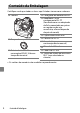 Os Contactos da Objetiva Mantenha os contactos da objetiva limpos. Evite tocá-los com os dedos. ● Armazenar Numa Área Bem Ventilada Para impedir a formação de mofo ou bolor, guarde a câmara num local seco e com boa ventilação. Não guarde a câmara com bolas de naftalina ou cânfora, perto de equipamento que produza campos eletromagnéticos fortes, ou onde esteja exposta a temperaturas extremamente elevadas, como por exemplo, perto de um aquecedor ou num veículo fechado num dia quente.