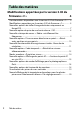Option du menu Réglages personnalisés Par défaut g13 [Limiter gamme de tons motif zébré] g14 [Type de quadrillage] Aucune restriction 3×3 g15 [Affichage des infos de luminosité] Histogramme g16 [Écran prise de vue moniteur perso.] [Écran 1] L (ne peut pas être décoché) [Écran 2] M [Écran 3] M M [Écran 4] g17 [Écran prise de vue viseur perso.] [Écran 1] [Écran 2] [Écran 3] g18 [Cadre REC rouge] 60 L (ne peut pas être décoché) M M ON Réglages par défaut et rubriques des menus de la version 3.