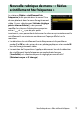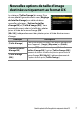 Visualisation • Visualisation des prises de vues verticales (0 19) • Nouvel affichage de la température de couleur pour les photos prises avec la balance des blancs « Pré-réglage manuel » (0 20) • Manipulation des rafales en groupes (0 21) • Nouvelle option de visualisation : « Infos du fichier » (0 23) Commandes • Nouvelle option de l’indicateur moment déclenchement « Délai de restauration auto.