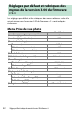 Les réglages par défaut et les rubriques des menus obtenus suite à la
